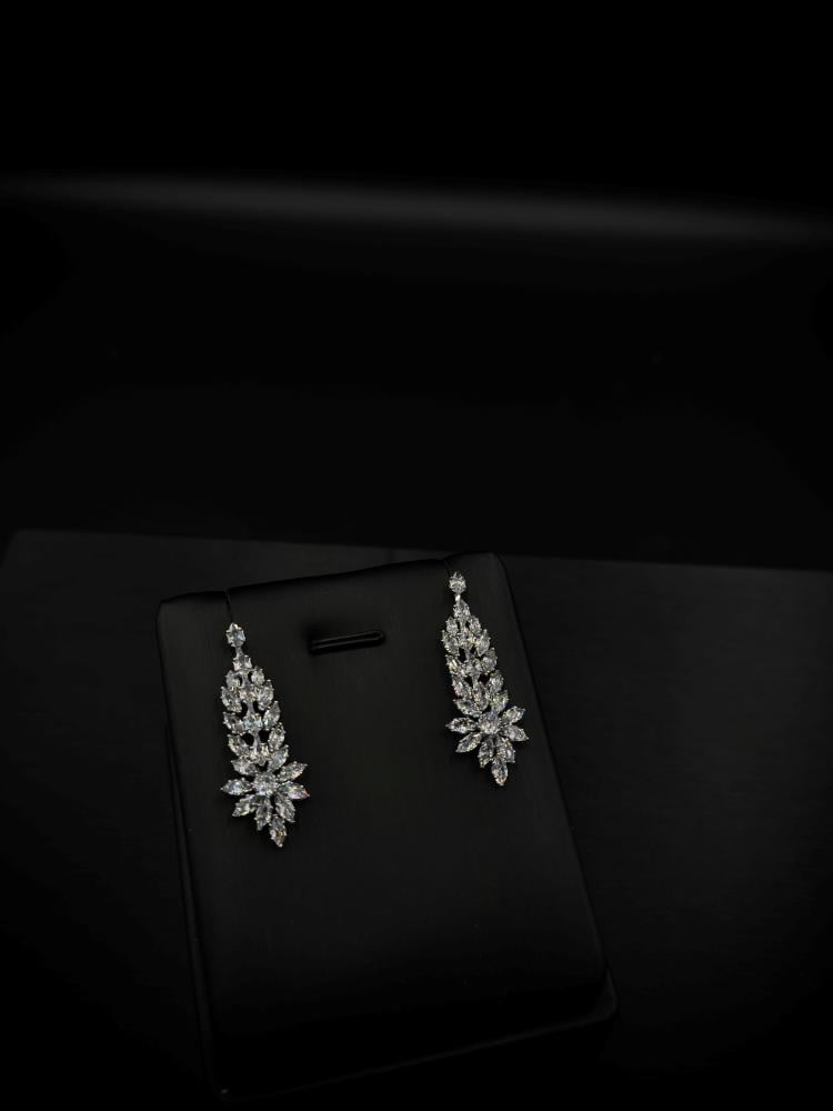 - أقراط: طويلة وبارزة، تتدلى بتصميم أنيق يعكس الضوء بشكل جذاب، مما يجعلها مثالية للمناسبات المسائية.