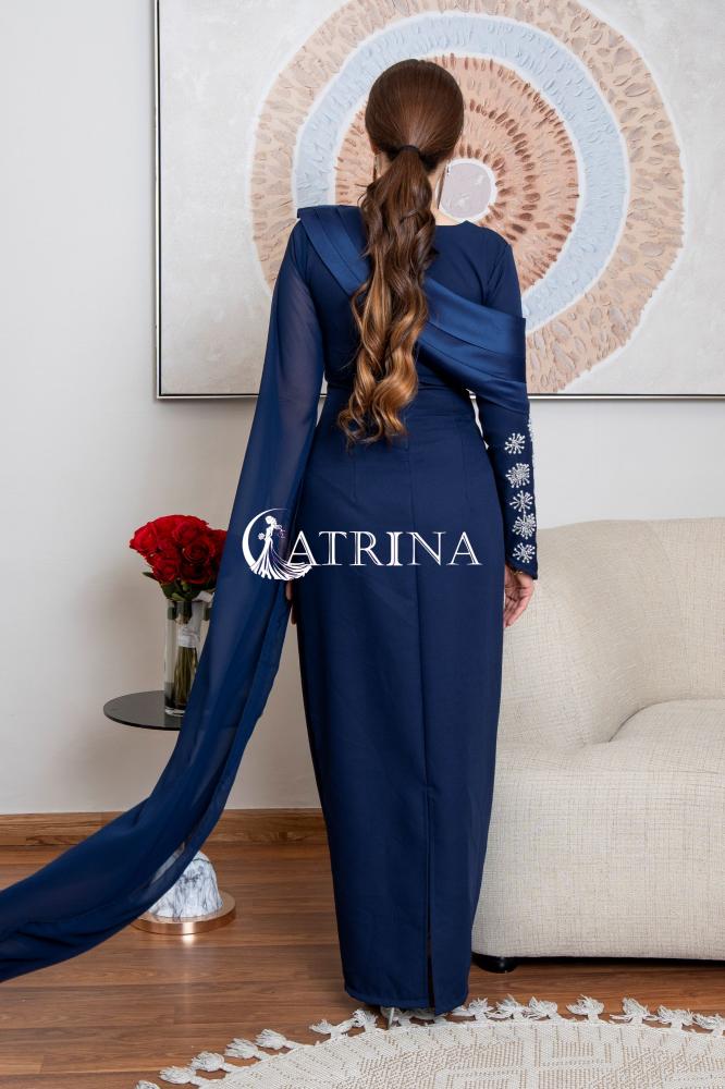 💙 التصميم: فستان سهرة فاخر باللون الأزرق الكلاسيكي، يتميز بقصة أنيقة وطابع راقٍ يناسب مختلف المناسبات.