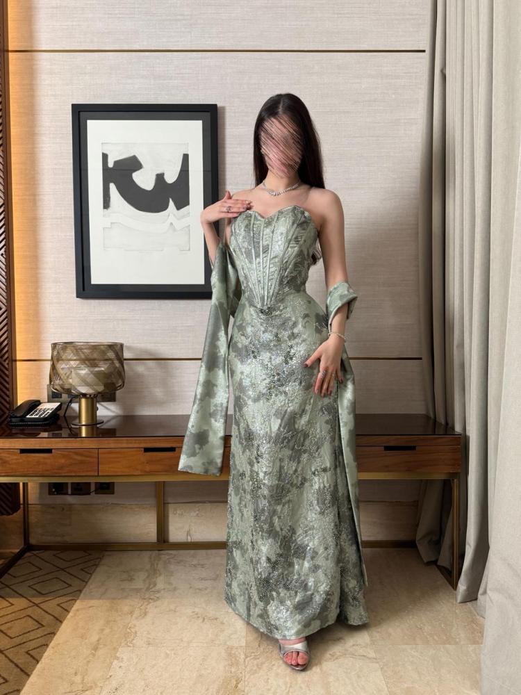 💚 فستان سهرة بتصميم كورسيه ولمعة خضراء فاخرة