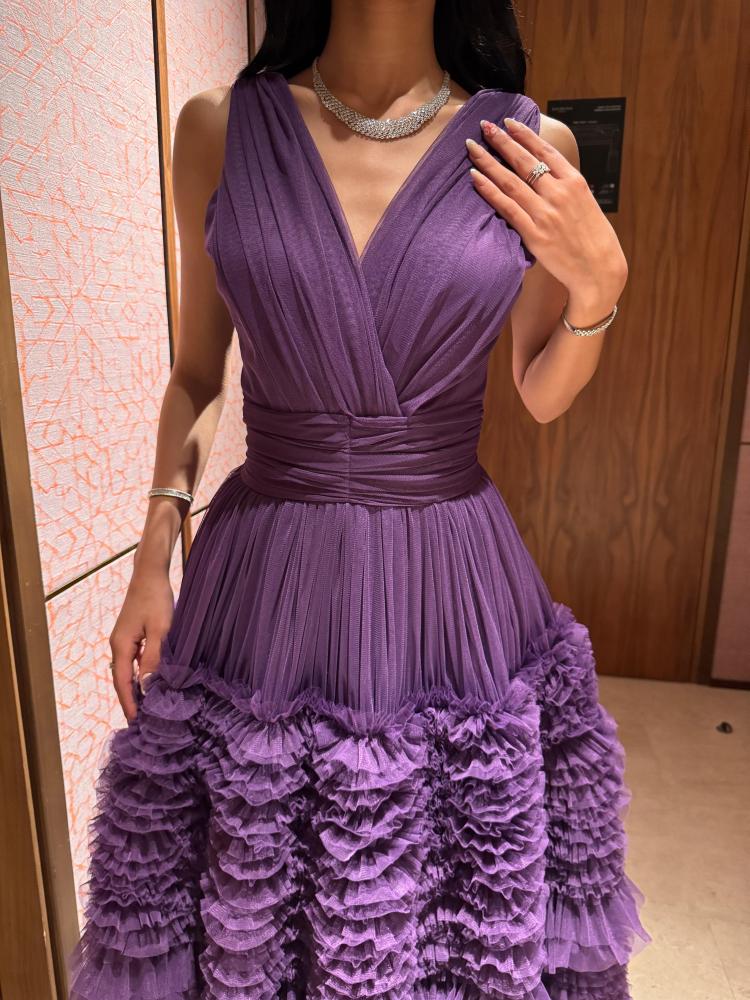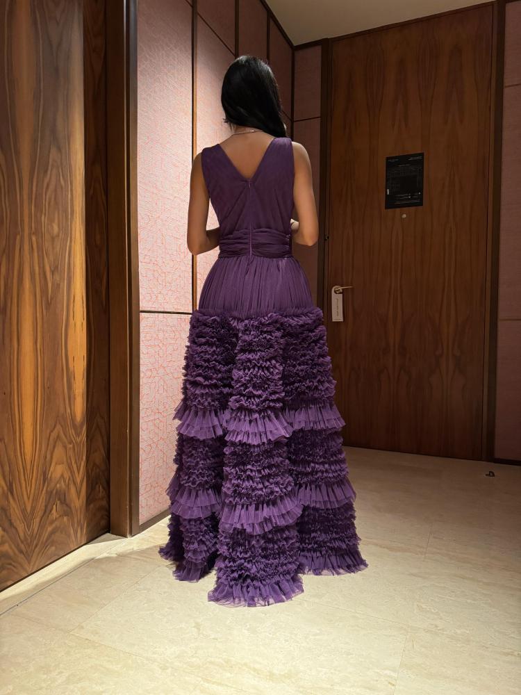 - التنورة: طبقات كشكش متدرجة لإطلالة فخمة ولافتة