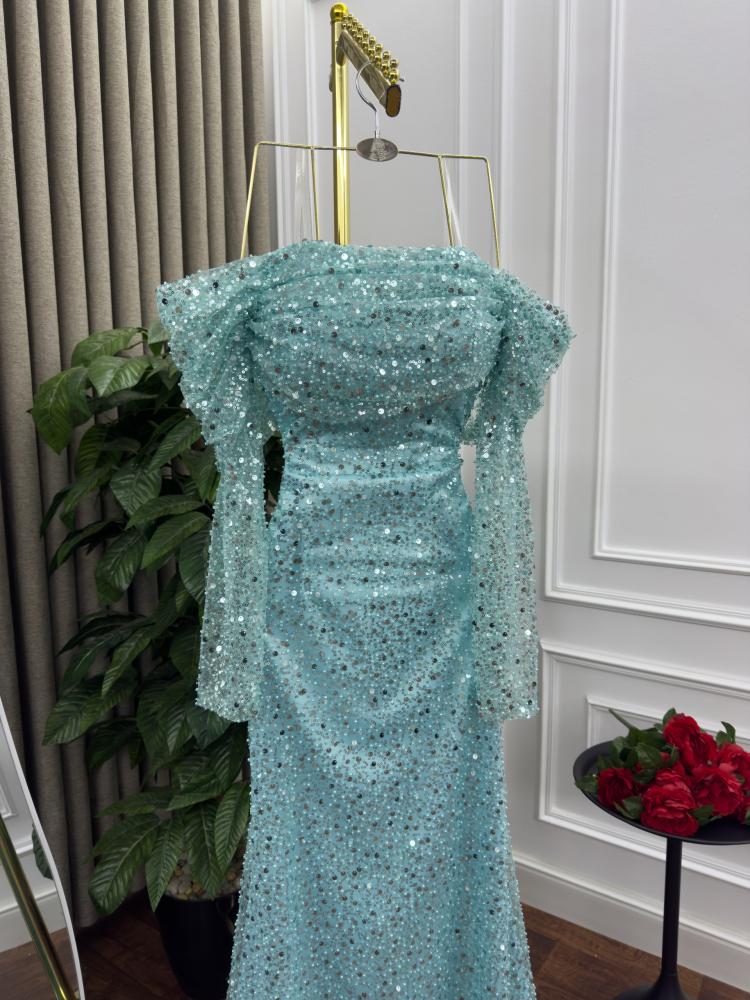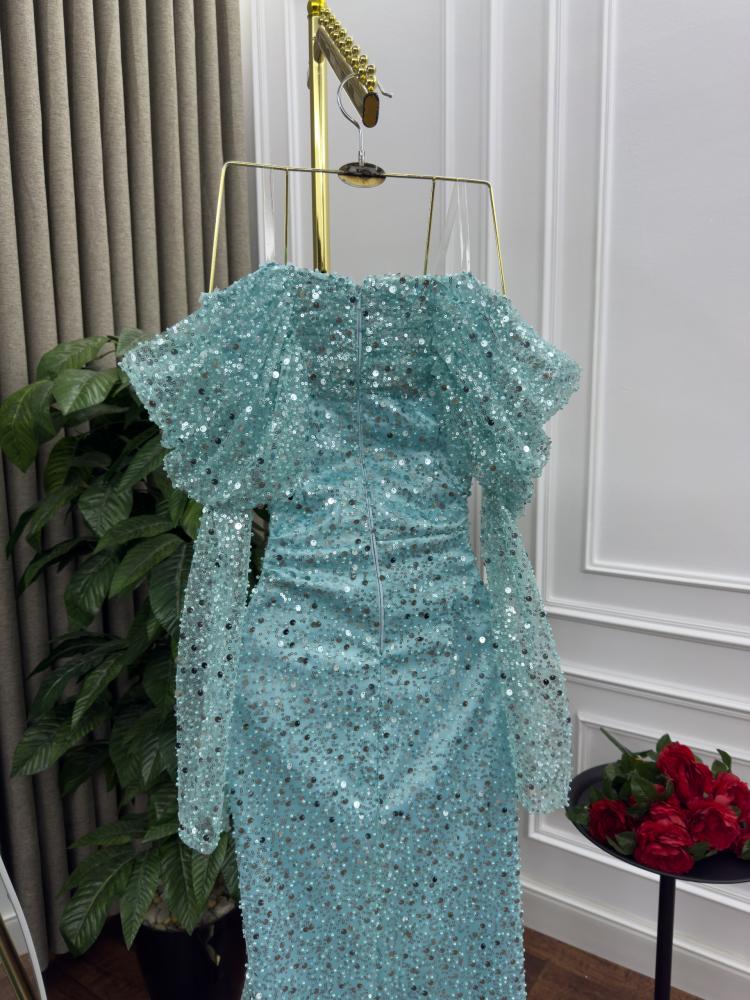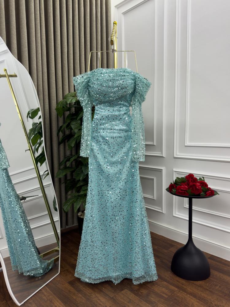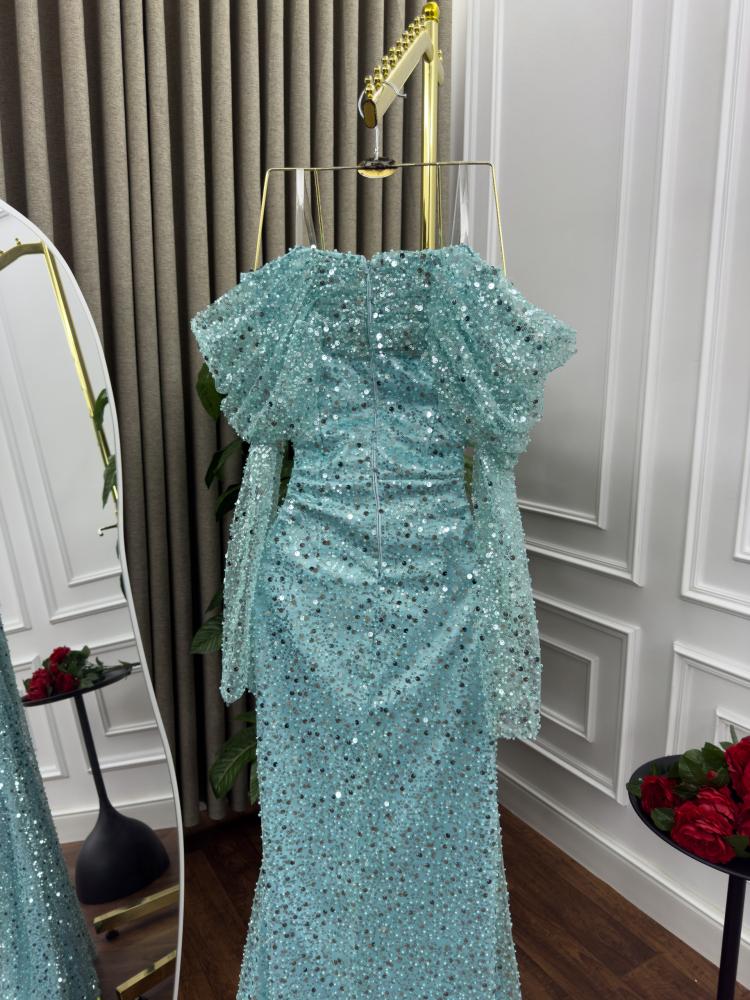 فستان سهرة تيفاني بتطريز ترتر لامع وأكمام طويلة