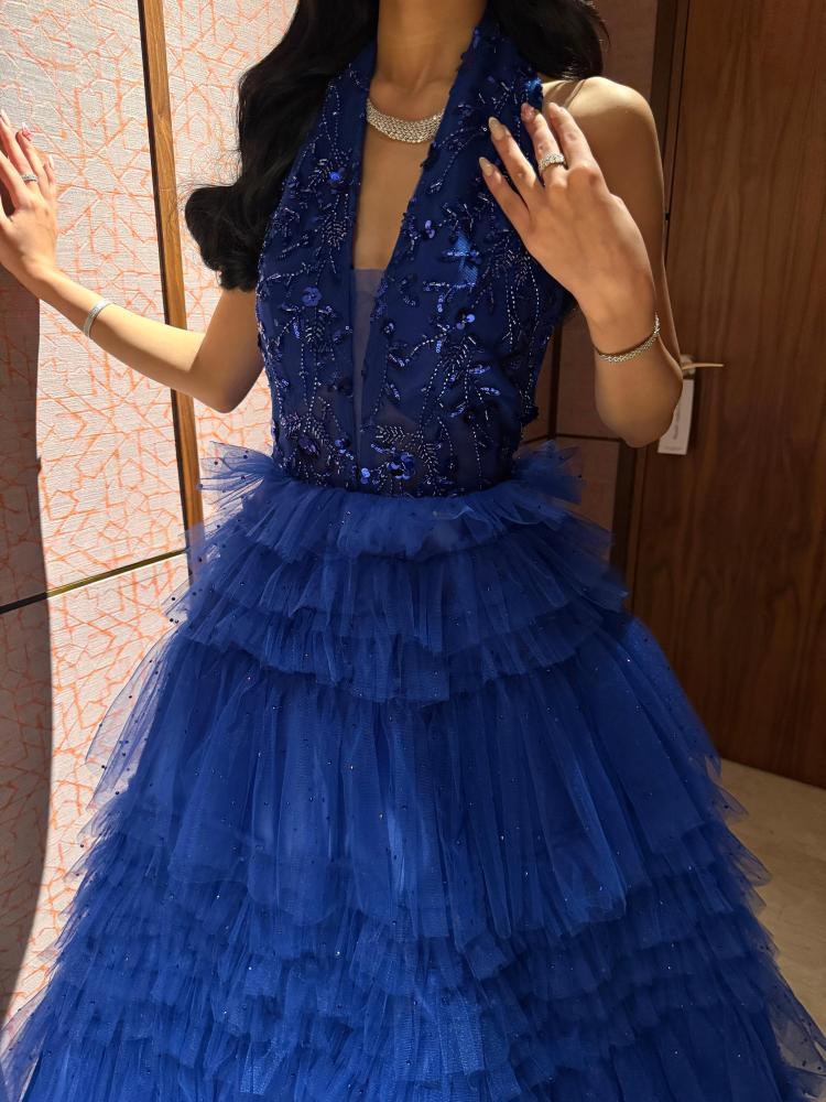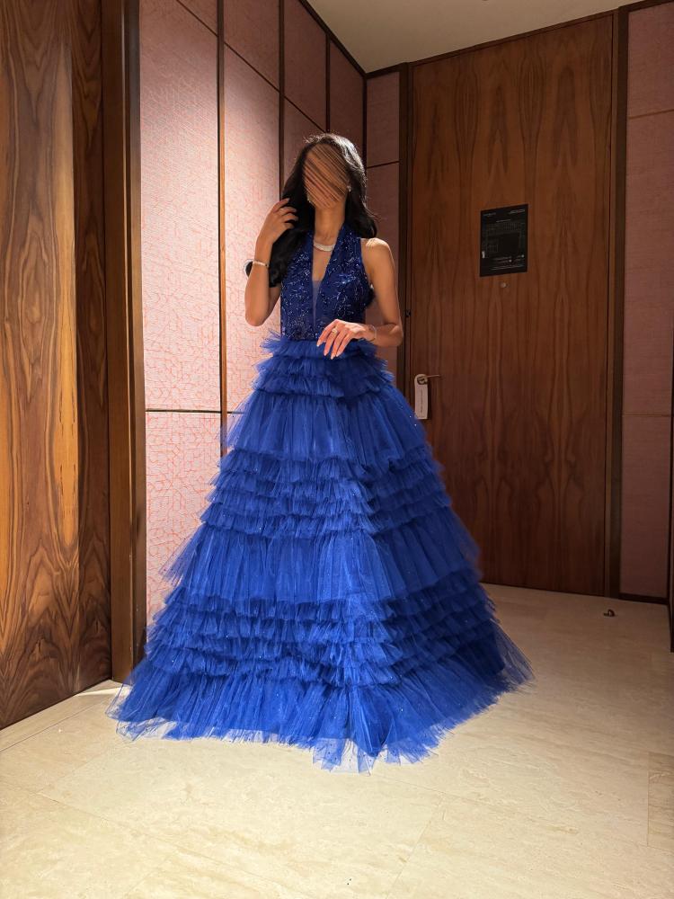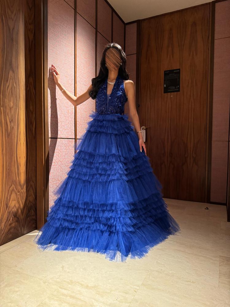 كوني نجمة السهرة مع هذا الفستان الأزرق الملكي المصمّم بإبداع وفخامة تخطف الأنفاس.