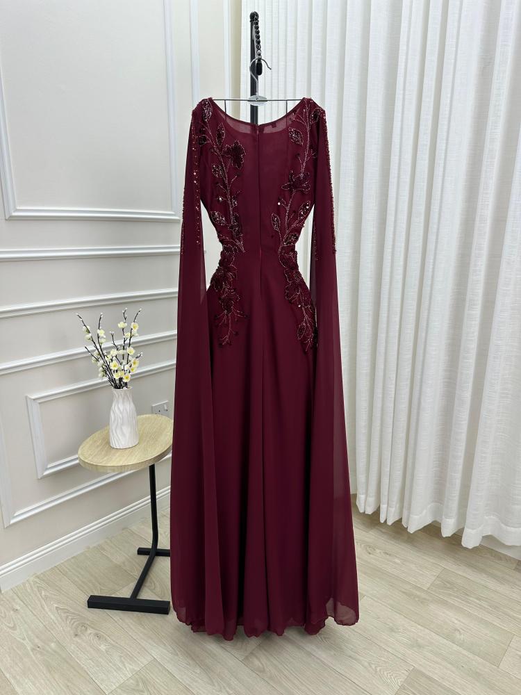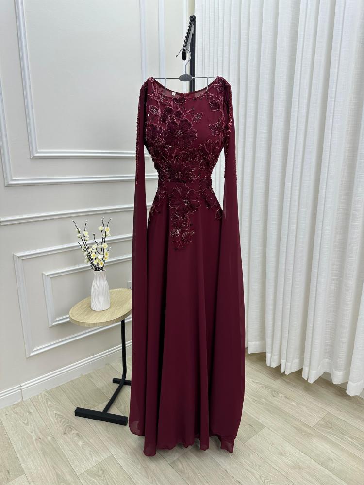 • الخامة: شيفون فاخر مع بطانة ناعمة وتطريزات براقة.