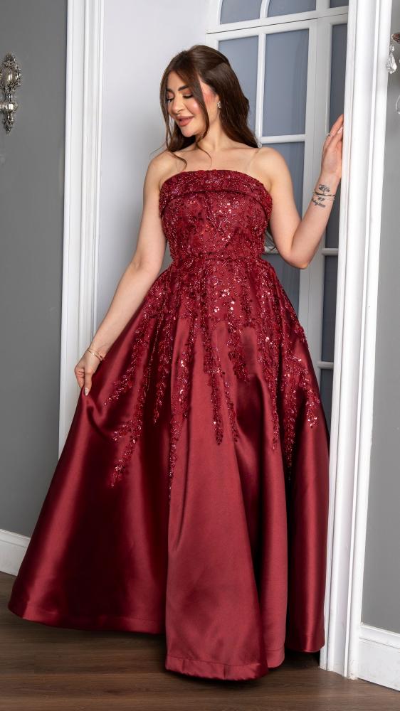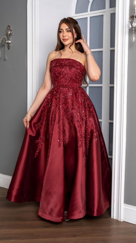🍷 وصف المنتج: فستان سهرة عنابي مطرز بفخامة ملكية✨
