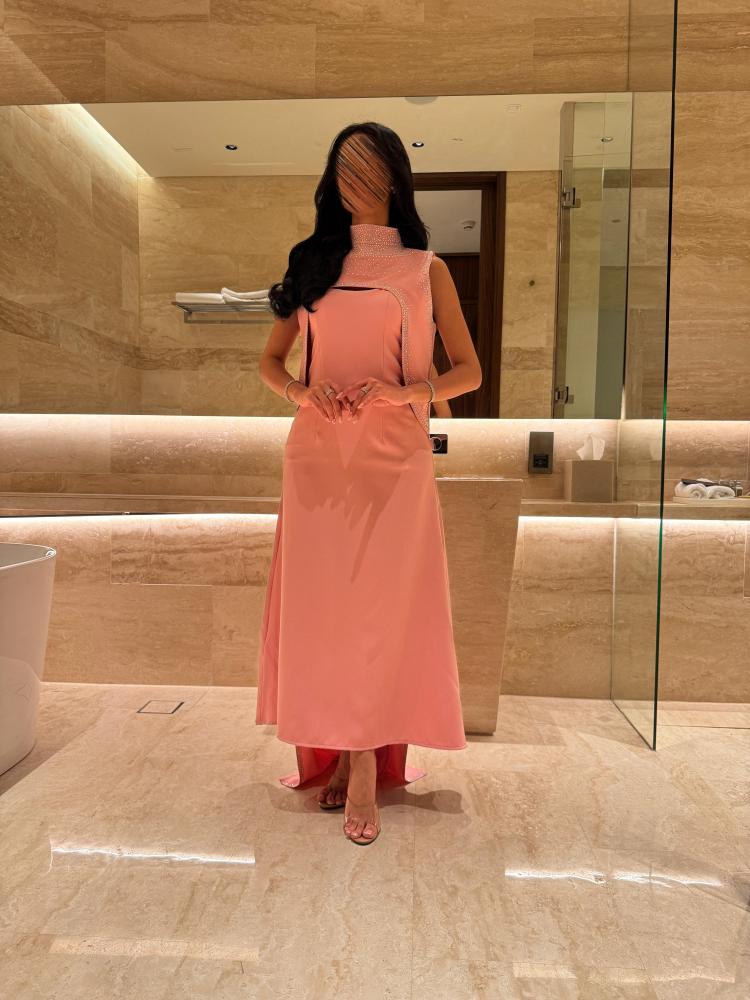 تألّقي بإطلالة أنثوية فريدة مع هذا الفستان الوردي الناعم المصمم بذوق راقٍ يجمع بين البساطة والأناقة.