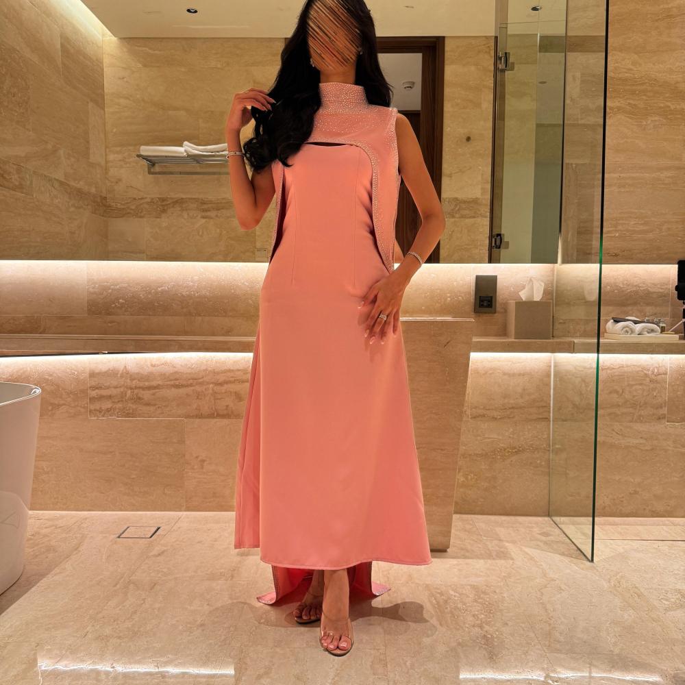 🌸 فستان سهرة وردي ناعم بتصميم ملكي عصري 🌸