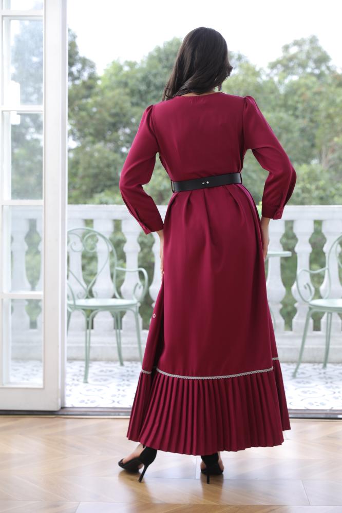 يزين الفستان اجود انواع الفصوص على البشت , وحزام راقي بكلة .